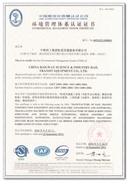 环境管理体系认证证书 发布时间: 2017-06-01 20:07:02 发布网站: 中国机械招标网