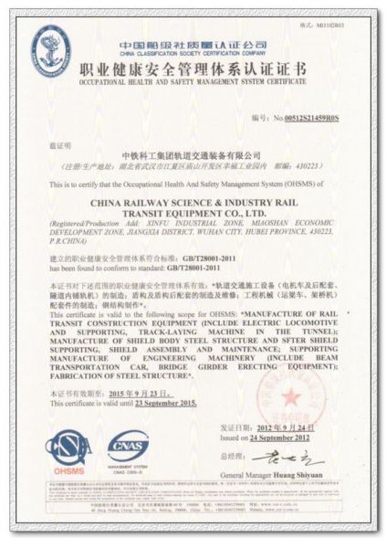 职业健康安全管理体系认证证书 发布时间: 2017-06-01 20:07:20 发布网站: 中国机械招标网