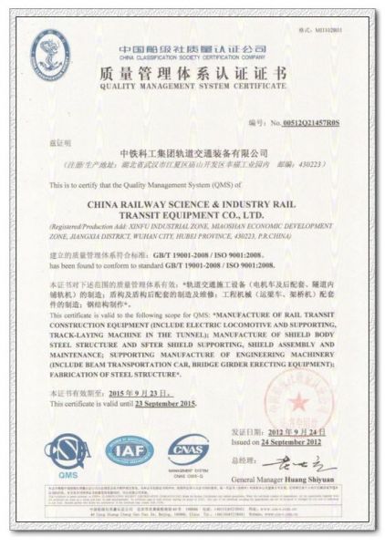 质量管理体系认证证书 发布时间: 2017-06-01 20:07:32 发布网站: 中国机械招标网