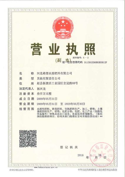 河北萌帮水溶肥料有限公司网站由中国机械招标网制做维护。内容真实性及解释权归河北萌帮水溶肥料有限公司负责。