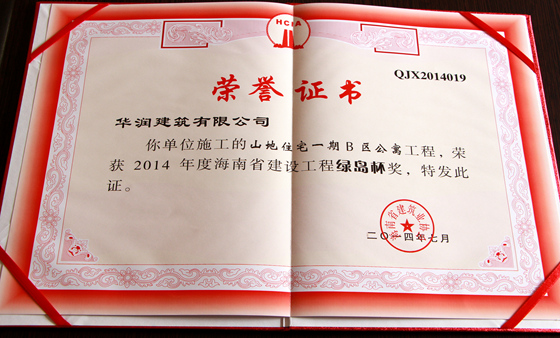 2014年度海南省建设工程绿岛杯奖