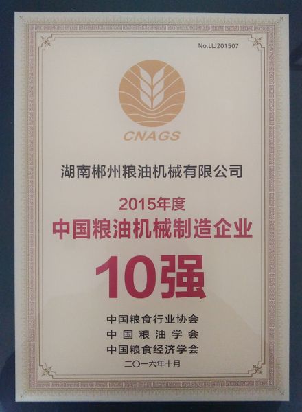 2015年度中国粮油机械制造企业10强