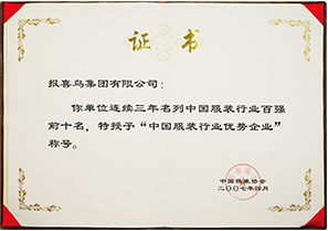 产品名称: 中国服装行业优秀企业 |